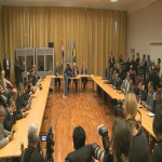 شاهد المصافحة بين رئيسي وفدي الحكومة الشرعية و مليشيا الحوثي في السويد