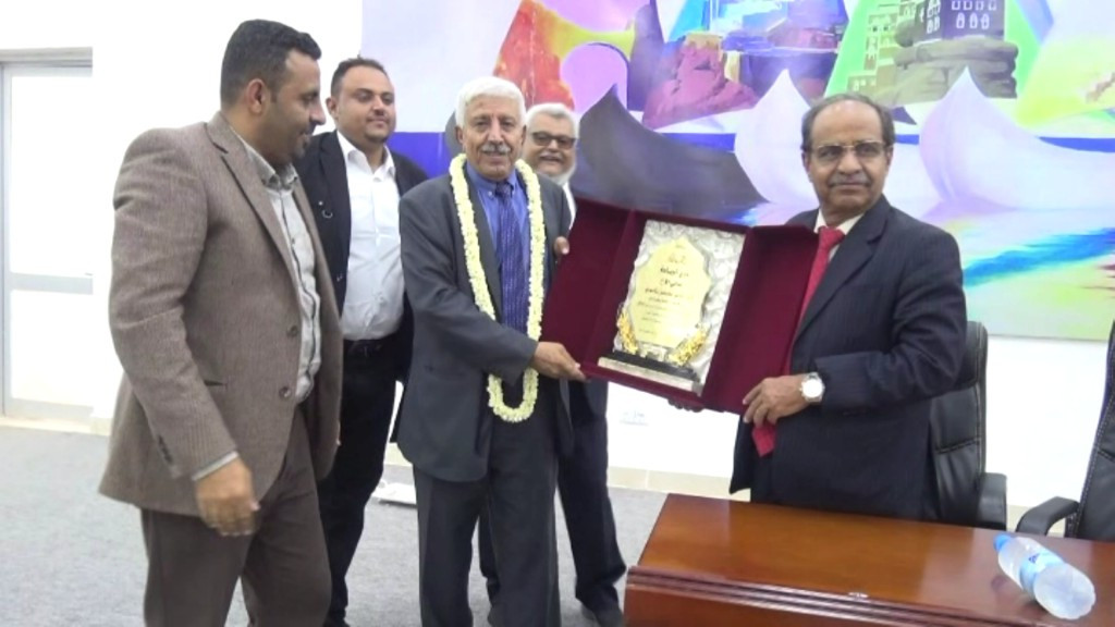 وكيل وزارة الصحة لقطاع الرعاية الصحية الاوليه الدكتور علي احمد الوليدي سلم للوزير درع تذكاري من منتسبي القطاع الصحي  واشاد بمناقب الوزير القيادية التي اهلته استحقاق هذه الجائزه الكبيره بالظرف الحرج  لبلادنا  واعادة تاسيس وبناء وزارة الصحه