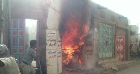 حريق يلتهم محل تجاري لبيع الفضة في حوطة لحج