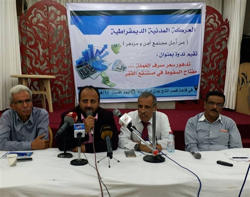 عدن : الحركة المدنية الديمقراطية تنظم ندوة لتسلط الضوء على أسباب تدهور سعر صرف العملة المحلية