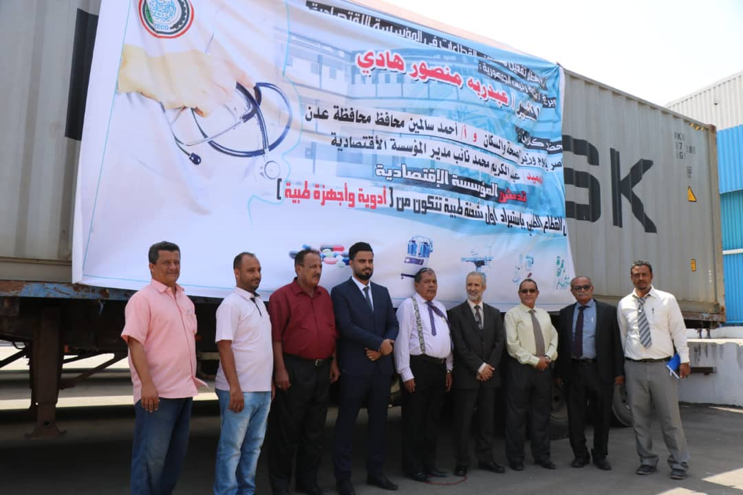 القطاع الطبي بالمؤسسة الاقتصادية اليمنية، بالعاصمة المؤقتة عدن، وصول أول شحنة طبية