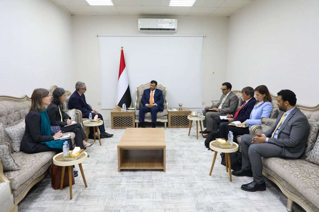 وتطرق اللقاء الى العلاقات الثنائية المتميزة بين اليمن ودول الاتحاد الاوروبي، ومجمل التطورات في المنطقة ، اضافة الى مستجدات الاوضاع المحلية، والتحديات التي يواجهها ابناء الشعب اليمني نتيجة ممارسات المليشيات الحوثية الارهابية المدعومة من النظام الايراني ، مشيداً بمواقف دول الاتحاد الاوروبي الداعمة للحكومة اليمنية وللشعب اليمني وتطلعاته في استعادة مؤسسات الدولة وإحلال السلام ، بما في ذلك التعهدات والمساعدات الإنسانية والانمائية المستمرة ، واهمية مضاعفتها لتحسين الاوضاع المعيشية، واستدامة الخدمات الاساسية.