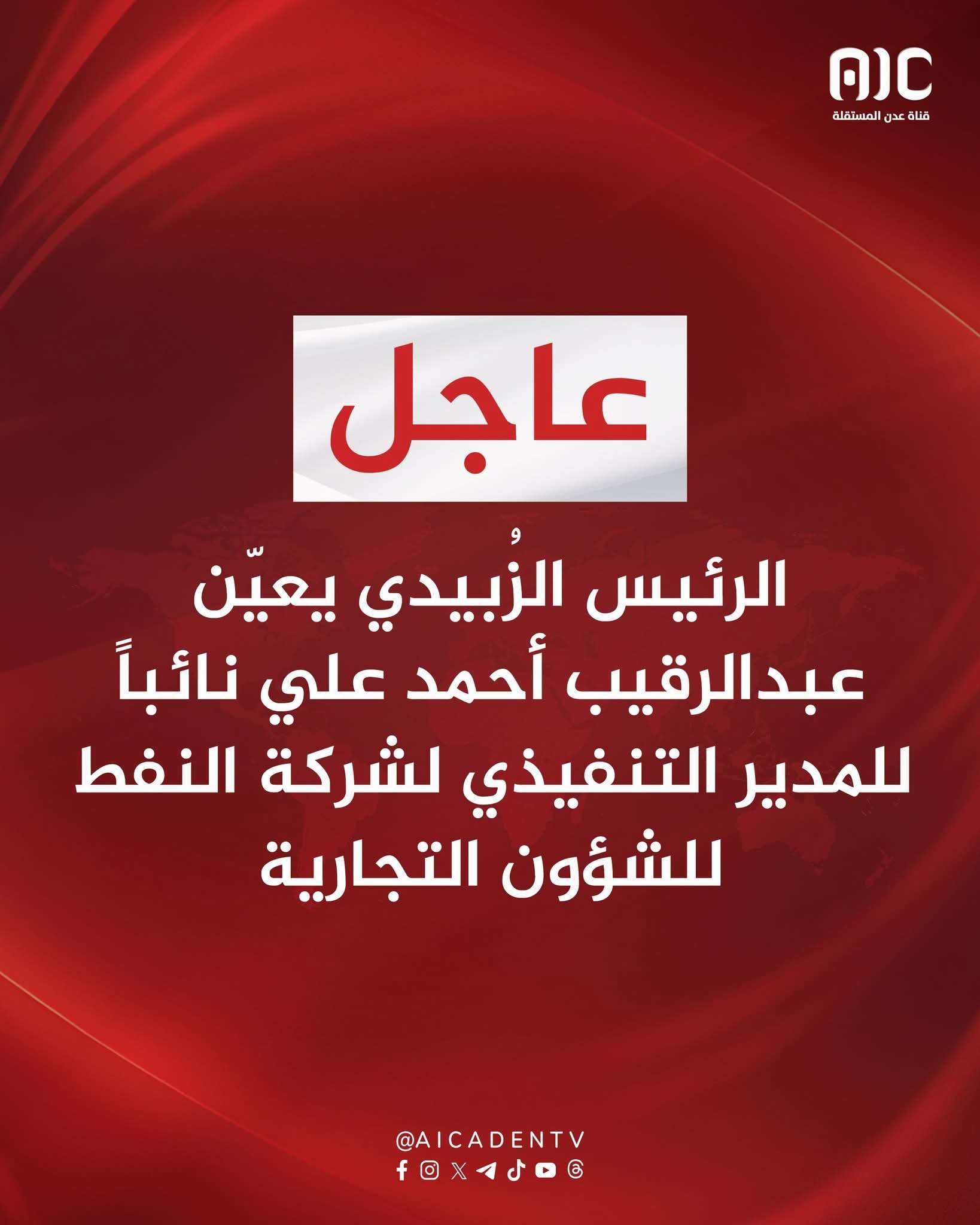 أصدر رئيس المجلس الانتقالي الجنوبي ونائب رئيس مجلس القيادة الرئاسي، اللواء عيدروس قاسم الزبيدي، قراراً قضى بتعيين عبدالرقيب أحمد علي مثنى الشوذبي (عم صهره) نائباً للمدير التنفيذي لشركة النفط اليمنية للشؤون التجارية.