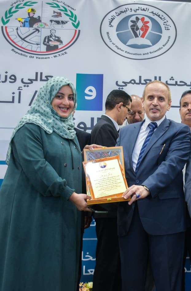 وخلال الحفل الذي أقيم برعاية معالي وزير التعليم العالي أ.د/ أمين نعمان القدسي، ومعالي وزير التعليم الفني أ.د/ أنور كلشات المهري، قامت الأستاذة منيرة يونس بتقديم درع الشكر والعرفان للدكتور الوصابي، معبرةً عن تقديرها العميق لسنوات عطائه التي اتسمت بالقيادة الحكيمة والدعم المستمر لقطاع التعليم الأهلي.