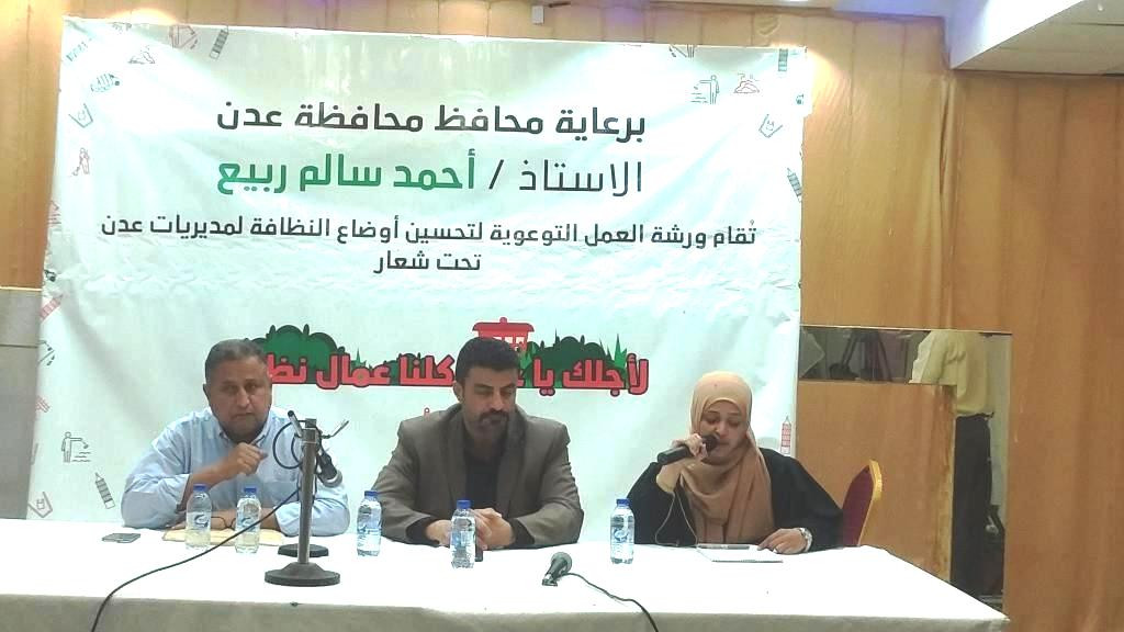 اختتمت اليوم بعدن ورشة العمل التوعوية الخاصة بتحسين مستوى النظافة في مديريات عدن، والتي أُقيمت برعاية من محافظ محافظة عدن الأستاذ أحمد سالم رُبيِّع، ومشاركة فاعلة من صندوق النظافة والتحسين وعدد من الجهات ذات العلاقة.