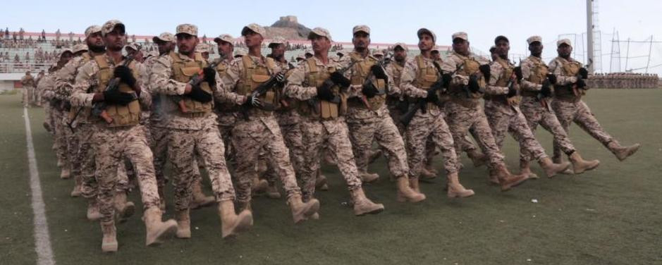 دشنت قوات ألوية الحماية الرئاسية التابعة للحكومة الشرعية صباح اليوم الثلاثاء العام التدريبي الجديد في معسكر اللواء الاول حماية رئاسية بمنطقة المعاشيق في العاصمة المؤقتة عدن .