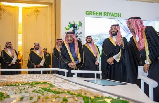 واستمع الملك إلى شرح مفصل من ولي عهده، عن المشاريع التي "تهدف إلى مضاعفة نصيب الفرد من المساحة الخضراء في الرياض 16 ضعفاً، عبر إنشاء أكبر حدائق المدن في العالم، وزراعة أكثر من 7 ملايين ونصف المليون شجرة في كافة أنحاء مدينة الرياض، إلى جانب تعزيز الجوانب الثقافية والفنية عبر إنشاء مجموعة من المتاحف والمسارح والمعارض وصالات السينما وأكاديميات الفنون"، بحسب الوكالة.