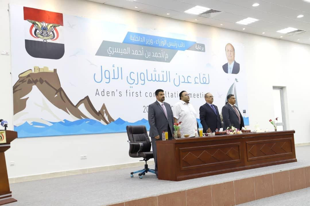 أكد لقاء عدن التشاوري الأول الذي عقد اليوم ، في قاعة الإتحادية بالعاصمة المؤقتة عدن، برعاية وحضور نائب رئيس الوزراء وزير الداخلية المهندس أحمد الميسري، أكد تمسكه بالدولة ورفضه المطلق لأي تشكيلات ميليشاوية.