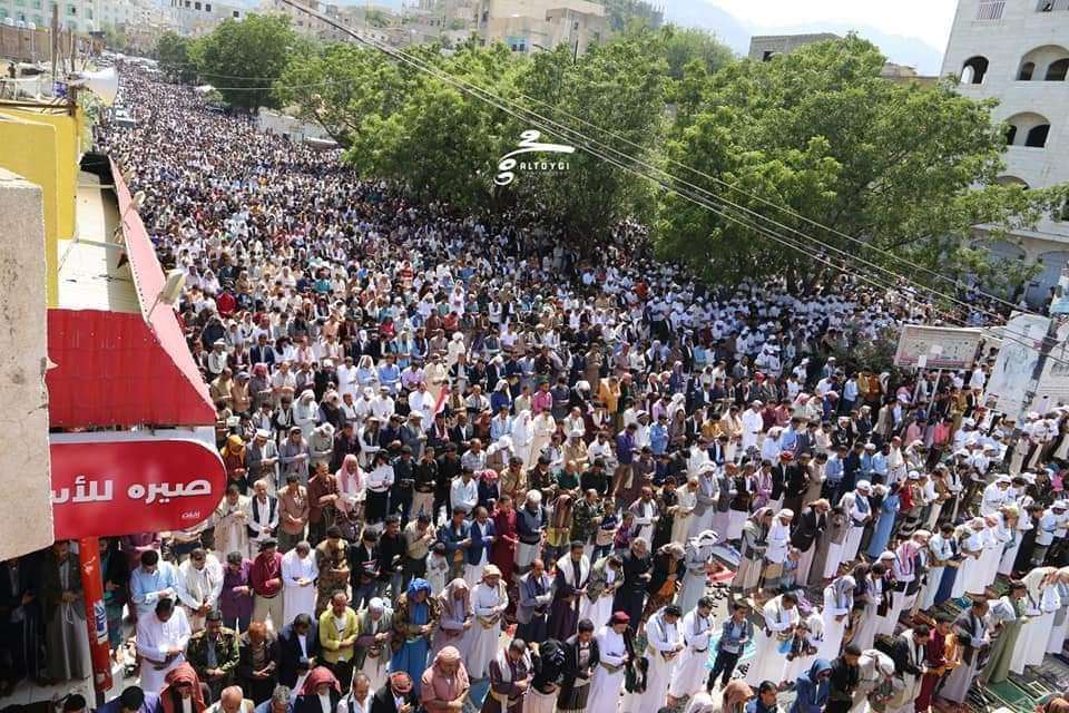 وانطلقت مراسيم التشييع في ساحة الحرية بقلب مدينة تعز، بمشاركة جماهير كبيرة.