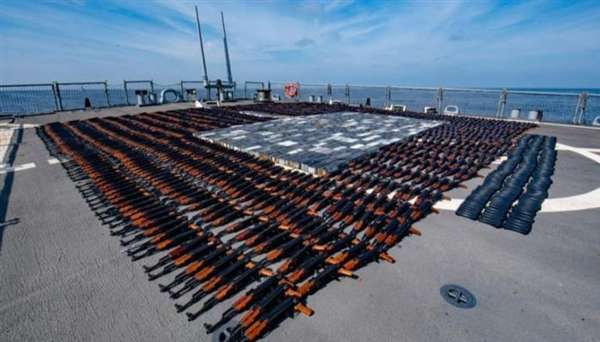 كما ضبطت في فبراير/ شباط، شحنة أسلحة إيرانية في بحر العرب وتتألف من آلاف البنادق الهجومية من طراز AK-47 ، والمدافع الرشاشة الخفيفة، وبنادق القنص الثقيلة، وقاذفات القنابل ذات الدفع الصاروخي.