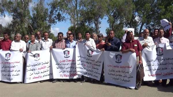 عدن ... موظفي ومتعاقدي الجامعات ينظمون وقفة احتجاجية للمطالبة بتحسين أوضاعهم المعيشة وتسوية مرتباتهم