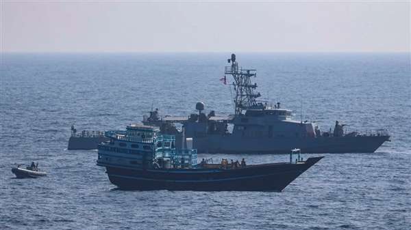 وأفاد الأسطول الخامس الأميركي، ومقرّه البحرين، أن مدمّرة صواريخ موجّهة أميركية وسفينة دورية "اعترضتا سفينة لا ترفع علم أي دولة وتمر عبر إيران.. على الطريق المستخدم في السابق لنقل الأسلحة إلى الحوثيين في اليمن".