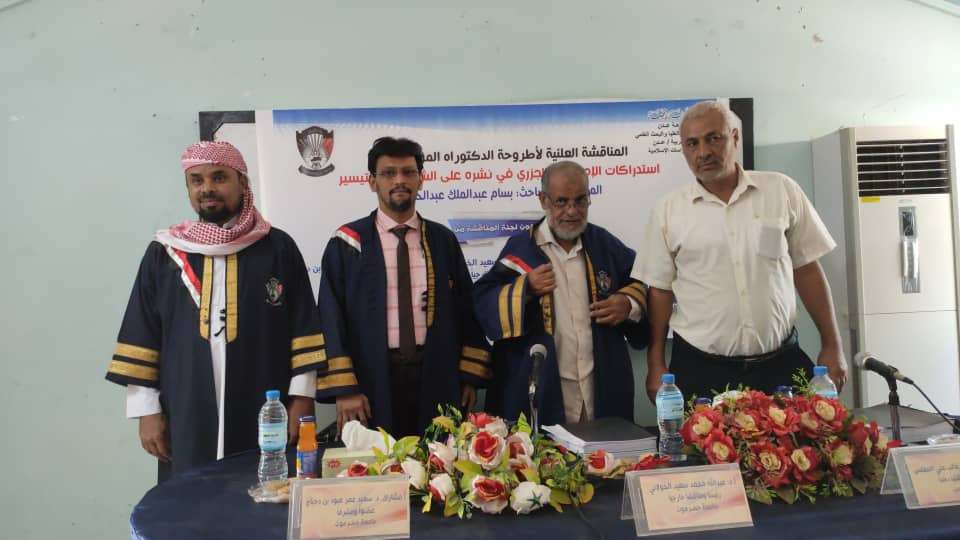 الدكتوراه للباحث بسام عبدالملك من جامعة عدن مع التوصية بتداول البحث بين جامعات العالم الاسلامي