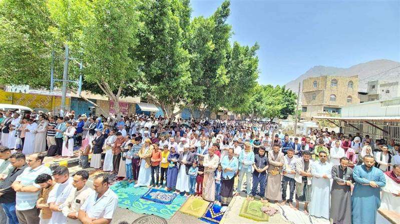 واستنكر الخطباء تراخي الأمم المتحدة والمجتمع الدولي بشأن ملف تعز الإنساني، رغم التزام الحكومة ببنود الهدنة المعلنة.
