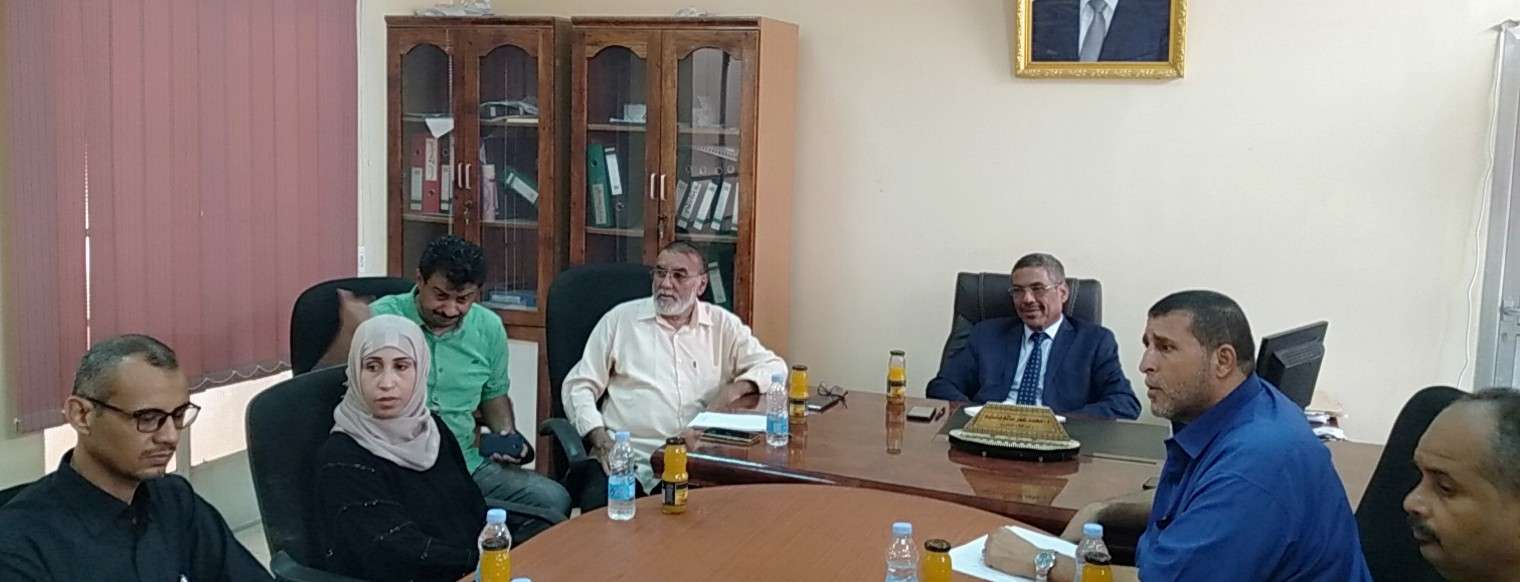تراس اللقاء د.م. محمد عمر باسليم وكيل قطاع المشاريع والتجهيزات و أ. حسين بافخسوس وكيل قطاع التدريب و التأهيل بحضور مديري عموم العراق بالوزارة وعن الصندوق رئيس و نائب رئيس وحدة التعليم و كذا ضابط مشاريع التعليم بعدن.
