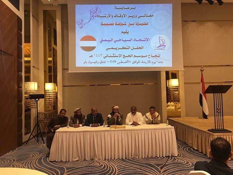 وجدد الوزير شبيبة في الحفل التكريمي الذي أقامه الاتحاد السياحي اليمني بمدينة جدة السعودية بمناسبة نجاح موسم الحج، حرص الوزارة بالشراكة مع القطاع الخاص لتسهيل الإجراءات وتقديم الخدمات للمعتمرين من كافة أنحاء اليمن.